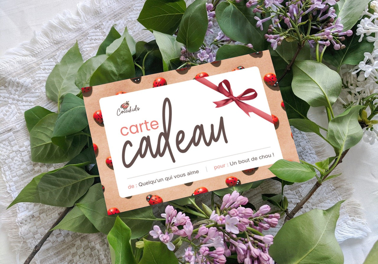 Découvrez nos cartes cadeaux Coccikids pour offrir le cadeau parfait à vos proches. Laissez-les choisir parmi notre sélection variée de produits pour enfants, et faites-leur plaisir à coup sûr. Idéal pour toutes les occasions !