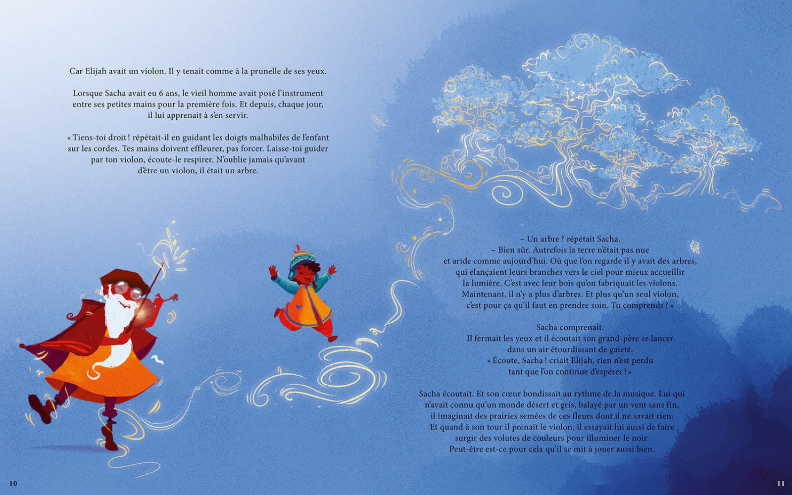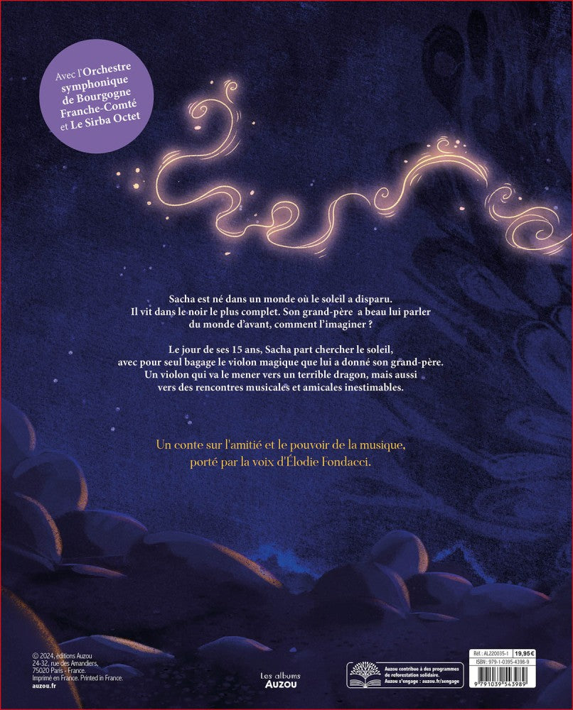Alors à l'âge de 15 ans, Sacha part chercher le soleil accompagné de son seul violon. Mais pas n'importe quel violon. C'est un violon magique qui va le mener vers le soleil, un terrible dragon mais aussi vers des rencontres musicales et amicales inestimables.