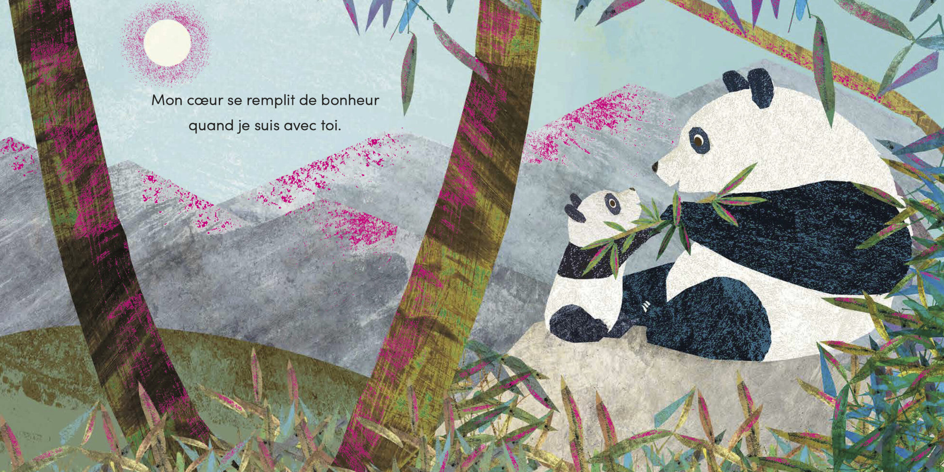 Cet album est une superbe lettre d’amour d’une grand-mère Panda à son petit Panda. Jouer, explorer, s’abriter d’une tempête ou se blottir l’un contre l’autre à la tombée de la nuit… Les moments partagés, pleins de tendresse et de complicité, resteront à jamais gravés dans leurs cœurs. Une belle histoire sur la relation petits-enfants/grands-parents, magnifiée par des effets de dorure sur la couverture et sur toutes les pages intérieures.